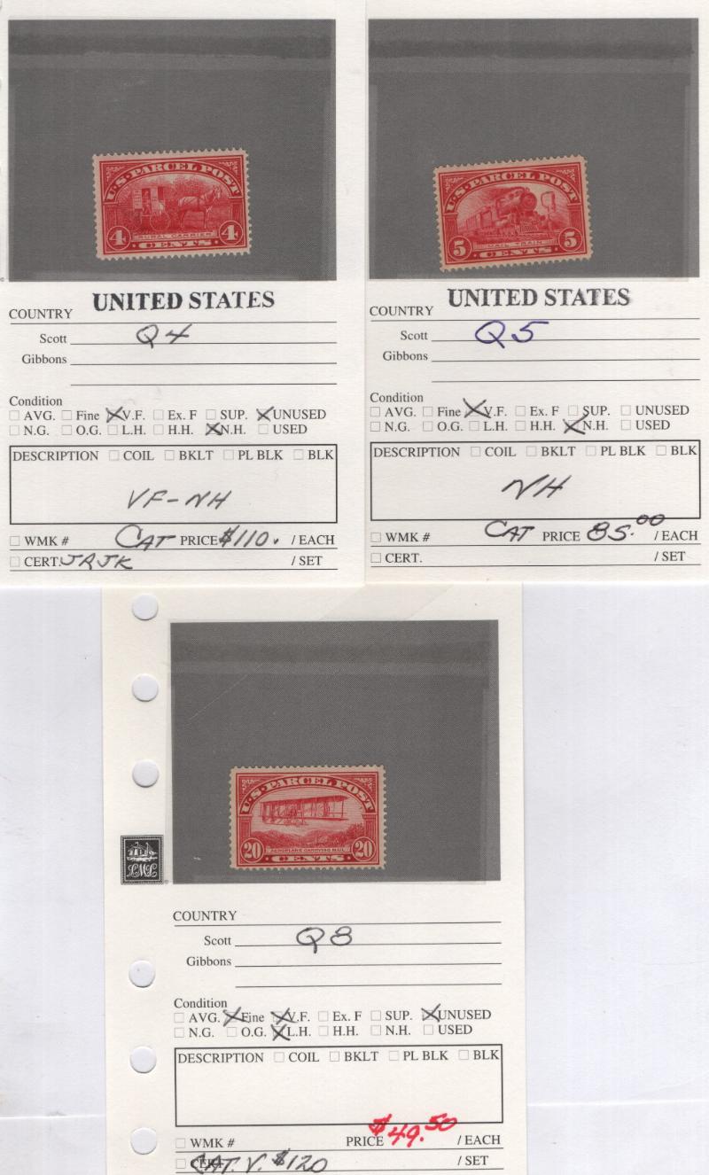 PARCEL POST Unused consisting of Q1 (1 NH, 4 H), Q2 (3 NH, 2 H), Q3 (1 NH, 5 H), Q4 (2 NH, 1 H), Q5 (1 NH, 1 H), Q6 (2), Q7, Q8 (3), Q9, Q11 (2); few edge spots or just F but mostly F-VF or better