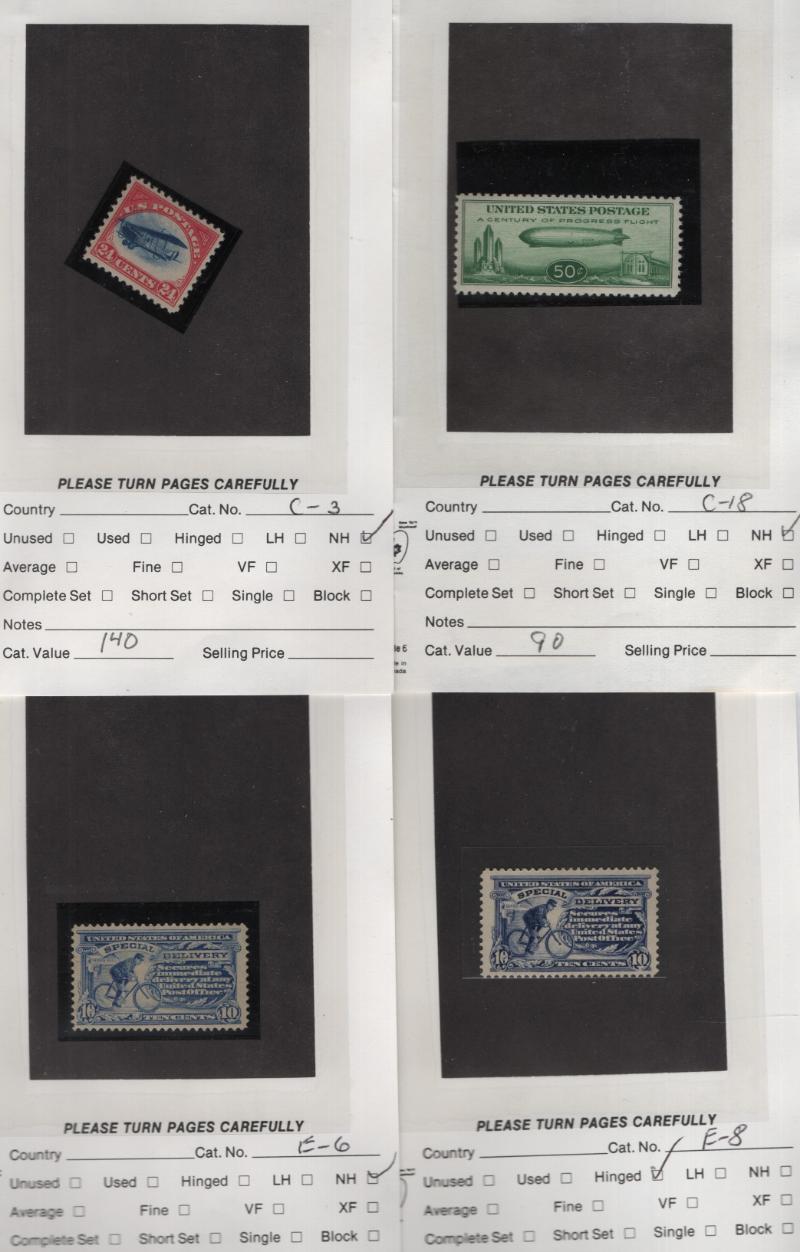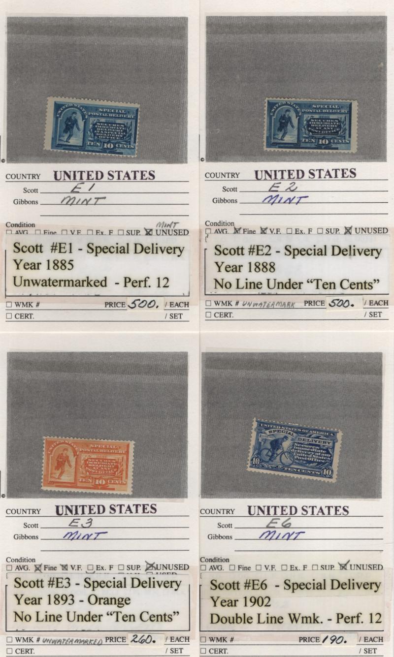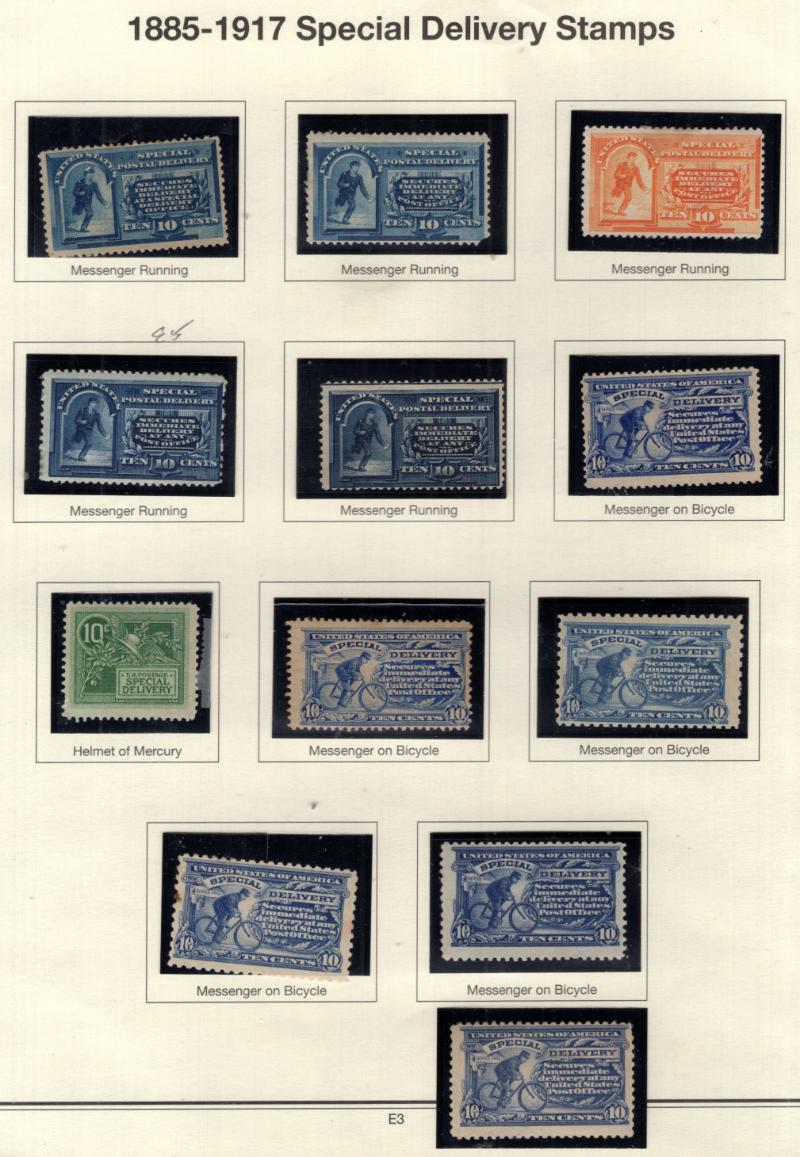 Dealer Stock abt (65+) */O mostly Special Delivery incl Unused: E1, E2, E3 (2), E4 & E5 (2 ea w/ problems), E6, E7 (1 NH, 3 H), E8, E11 (1 NH, 5 H), E12 (1 NH, 1 H), F1 (1NH, 2 H), BK54; some HR, few flts but gen F before E11, then gen F-VF or better