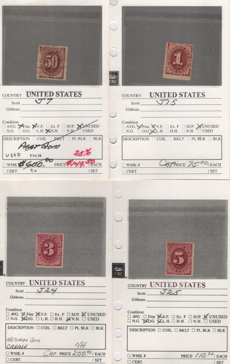 Dealer Stock abt (100) largely unused incl Unused: J15, J22, J23 (2), J24 NH, J25, J26, J56 Blk, J61 NH Blk, J62 NH Blk, J79-87 NH, J86 NH (8), J87 NH (2), modern Officials, QE1-4 NH (3), JQ5 NH; Used: J7; few flts or Avg but gen F-VF