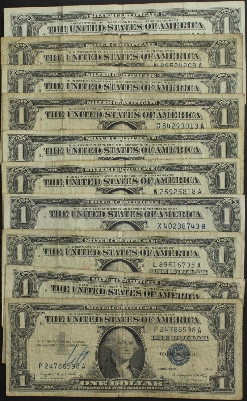 (58) $1 Silver Certificates most 1957x avg circ. (There is a 1934 "Funnyback" in low grade.)