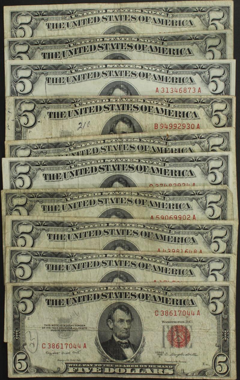 (30) $5 Red Seals all 1953x avg circ VG to VF.
