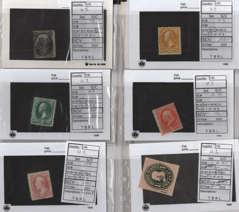 Selection abt (15) diff mainly better on cards w/ used #73, 190 & unused NG 159, 161, 205 & unused 147, 427, 470, 572, 619 PBK, 1053 PBK, O3, O15, U512 & UO70, mixed cond flts to F-VF NG/H/NH