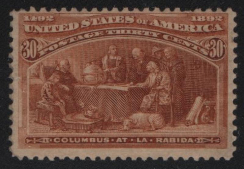 239 F-VF NH, 30¢ orange brown Columbian, light fingerprint on gum
