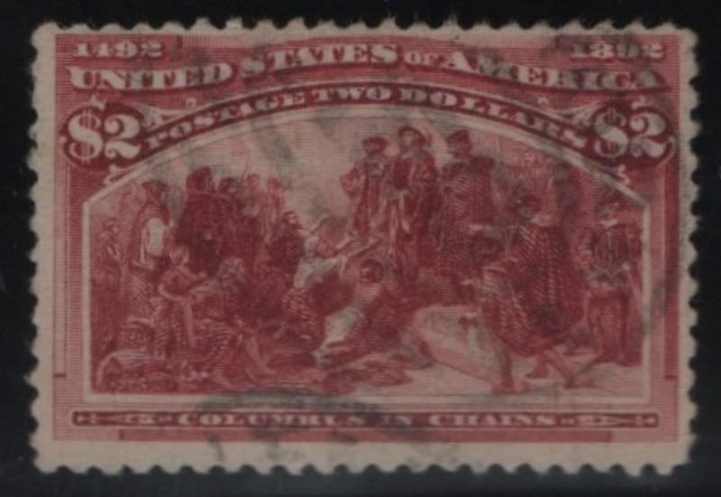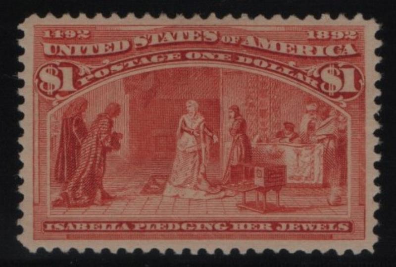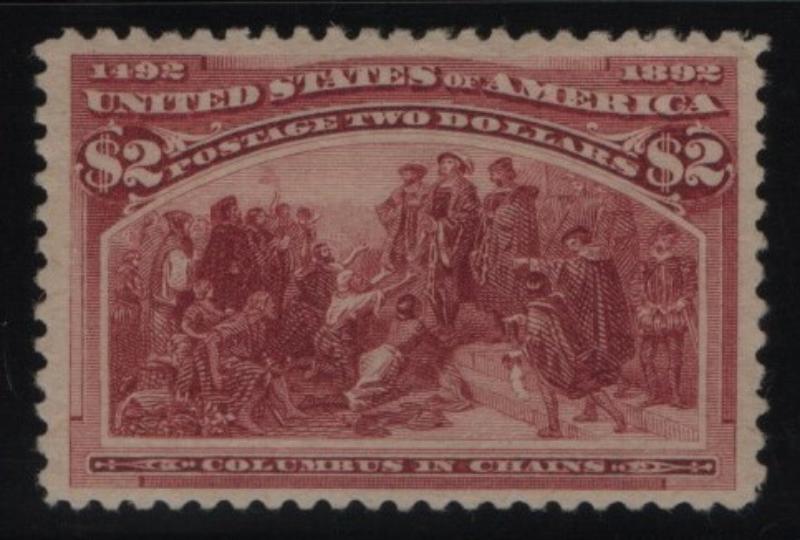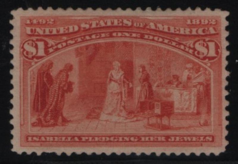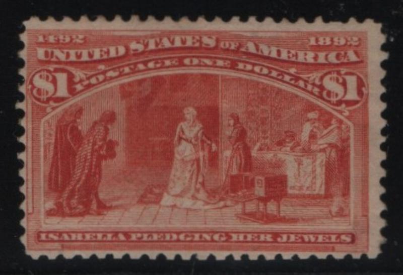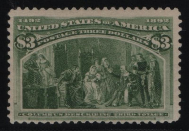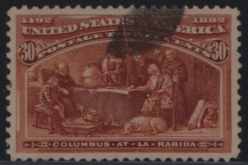 239 F-VF H, 30¢ Columbian, glazed gum, short perf at top, tiny knick in left frame
