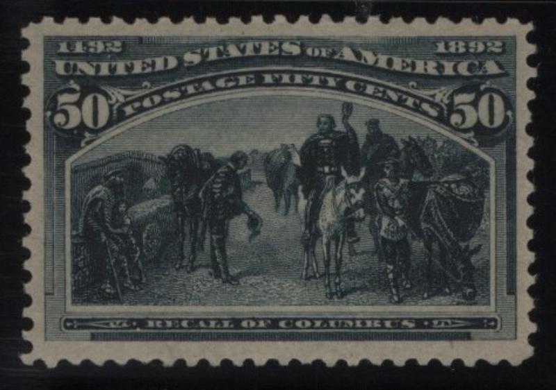 240 VF-XF VLH, 50¢ slate blue Columbian, 2008 PSE Cert graded VF-XF 85J (CV listed is SMQ)