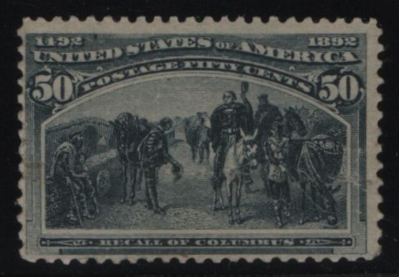 240 F-VF RG, 50¢ slate blue Columbian, clear impression (CV listed is for NG)