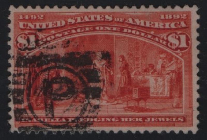 241 VF Columbian $1 salmon, black cancel, graded 80 by 2024 PSAG Cert (SMQ CV $600)