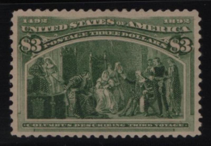 243 F H, $3 yellow green Columbian, 2010 PSE Cert graded Fine 70