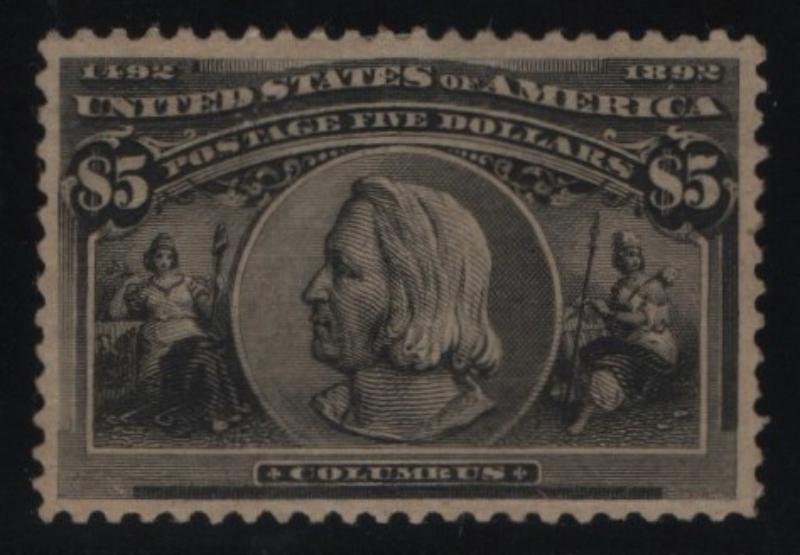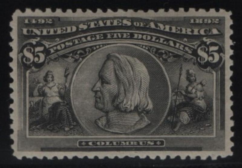 245 AVG-F DG, $5 black Columbian, 2010 PSE Cert "disturbed OG w/ horizontal crease at bottom" graded VG 50, centering is VF