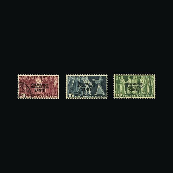 1948-63 WORLD HEALTH ORGANISATION: A very fine used collection with 1948 Landscapes of 5 then 1948-50 Pictorials (ex 20c, 35c & 1fr50)1957 set plus 1964 Malaria opt. Lovely clean lot (32) {U} [US2] (Start Price / Minimum Bid) = £62.40)