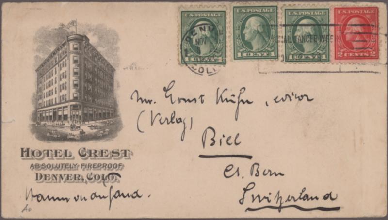 1911/1939 US HOTEL MAIL: Small collection of 13 covers and picture postcards from US Hotels to Switzerland.
