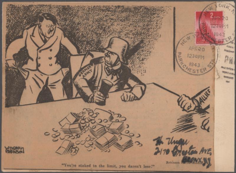 1939/1945, WORLD WAR II. Lot of 57 genuinely used covers (also large formats) and 2 cardboards (used too), mostly pasted with newspaper clippings about events of the time. Historically very interesting.