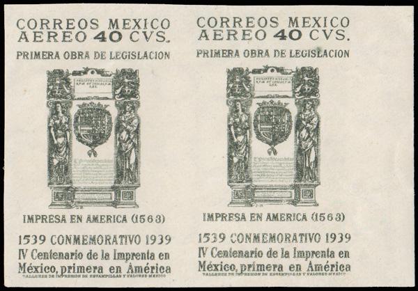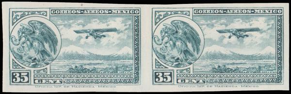Airmail, 1939, Printing in Mexico, 40c slate green, imperforate (Scott C98a), right sheet margin horizontal pair, o.g., never hinged, Very Fine, signed Sanabria. Scott $700 for hinged.