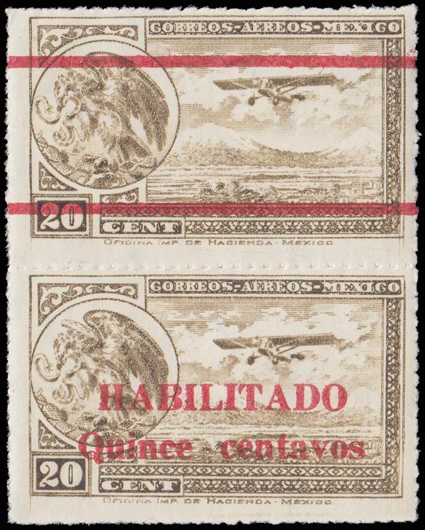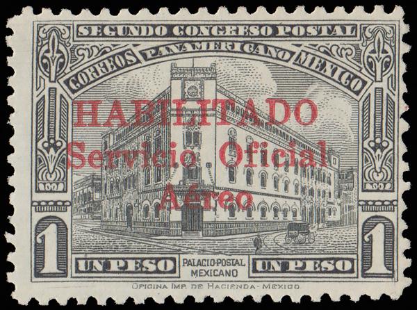 Airmail Officials, 1929, 20c Pan-American Postal Congress, 20c double overprint (Scott CO7 var.), o.g., fresh and well centered, Very Fine. According to Sanabria, just four examples were produced, signed Heiman and Ruidiaz, with a 1964 P.F. certificate. Sanabria 38b.
