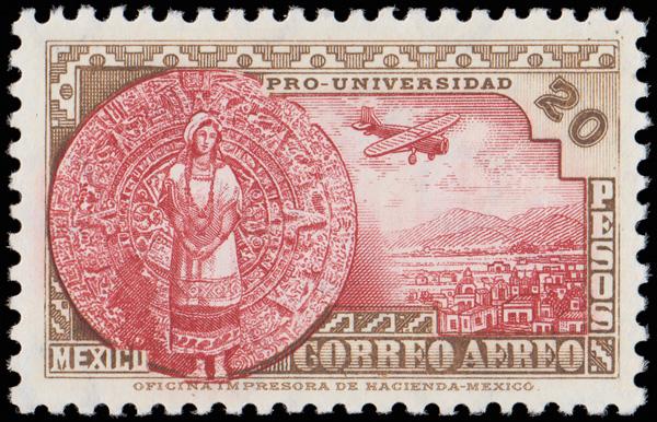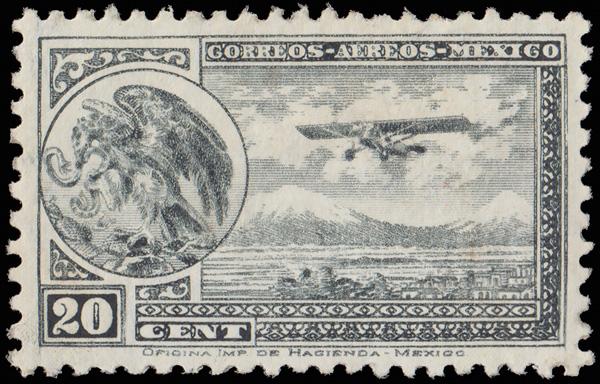 Airmail, 1936, 20c Eagle Man, watermarked "HACIENDA..." between lines (Scott C76A), a choice mint single, o.g., never hinged, wonderfully fresh and very well centered, Very Fine, with a 1978 M.E.P.S.I. certificate. Scott $7,500.