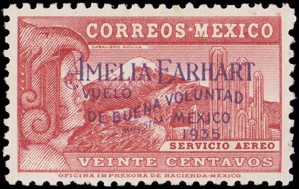 Airmail, 1935, Amelia Earhart Flight, "MUESTRA" (Specimen) in the overprint (Scott C74S), o.g., never hinged, fresh and perfectly centered; single very slightly toned perf at the top (not mentioned on the accompanying certificate, though it is visible in the certificate's photo), otherwise Ex