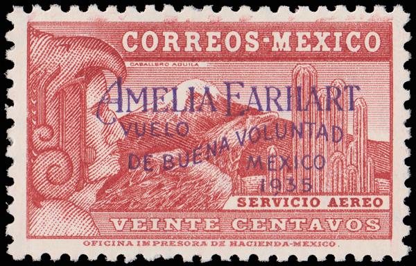 Airmail, 1935, Amelia Earhart Flight, "MUESTRA" (Specimen) in the overprint (Scott C74S), o.g., never hinged, bright and fresh, Very Fine, with a 1984 M.E.P.S.I. certificate.