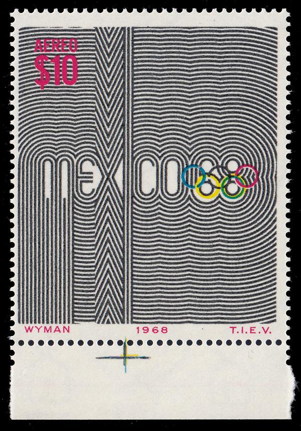 Airmail, 1968, 10p Olympics, watermark error (Scott C344 var.), watermark "MEX- MEX" and Eagle instead of "MEX" and Eagle in circle", o.g., never hinged, Very Fine. A rare, unlisted variety, with a 1995 M.E.P.S.I. certificate erroneously identifying the Scott number as C