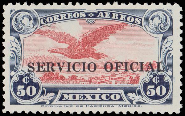 Airmail Officials, 1932, 50c deep blue & claret, unwatermarked (Scott CO18), o.g., lightly hinged, bright and fresh, Very Fine. Only 100 were issued, signed Ruidiaz and Sanabria, with a 1975 M.E.P.S.I. certificate. Scott $1,000.