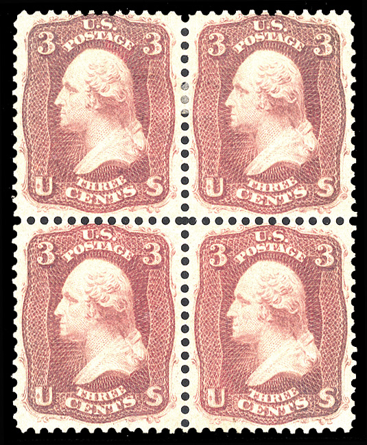 (65-E15h) 1861 Premiere Gravure, August issue, 3c brown rose, block of four, bright color, original gum, fine and scarce multiple, with 2004 PFC (formerly Scott 56, catalogued as four singles) cat. $2,200