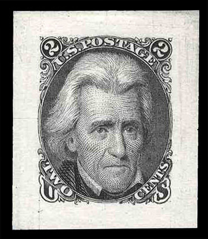 (73aP2) 1861 2c black, die II, small die proof from the Roosevelt Album, expertly removed from gray card, v.f., cat. $1,300