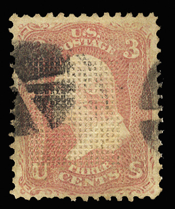 (85) 1867 3c rose, D.Grill, neat black cancel, well centered for this difficult issue, v.f., with 2000 PSE certificate, cat. $1,050