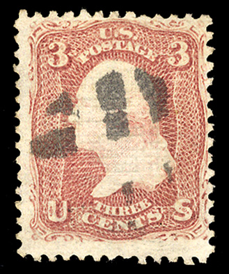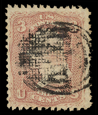 (85) 1867 3c rose, D.Grill, used, well centered for this difficult issue, clearly defined grill, fine, with 2005 PFC, cat. $1,050