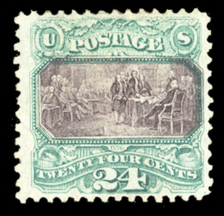 (120) 1869 24c green and violet, unused, small part redistributed original gum and hinge remnant, bright color, fine, with 2021 Crowe certificate, cat. $8,000