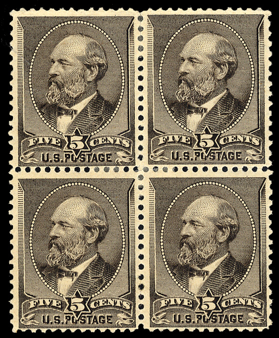 (205) 1881 5c yellow brown, block of four, rich color, wide margins, h.r., fine-v.f.,cat. $1,150