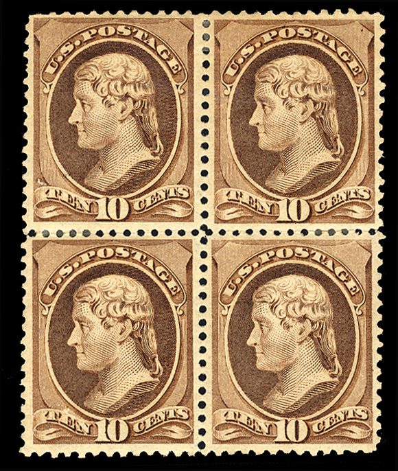 (209) 1882 10c brown, block of four, h.r., fine-v.f., cat. $950