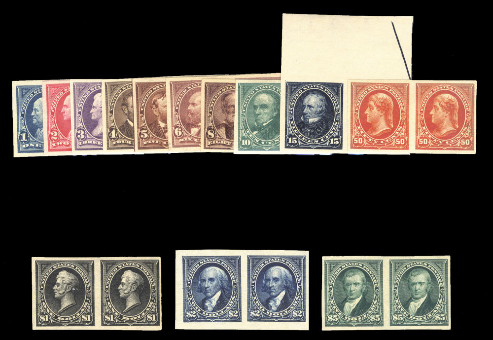 (264-278P) 1895 1c-$5 imperforate horizontal pairs, complete set of 13, l.h. or h.r. (few low values with slightly disturbed gum), 6c with faint thin, mostly fine-v.f., rare set of imperforate pairs, only 50-100 of each printed, with APS, PFC and PSE certificates for several of the pairs, cat. $12,2