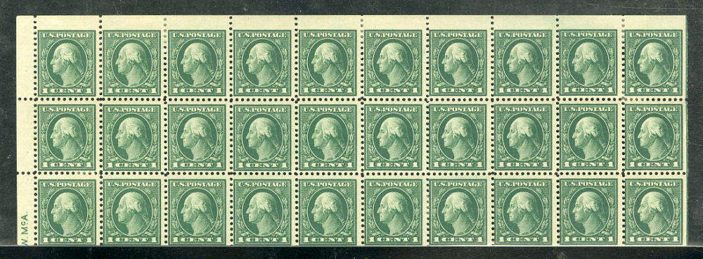 (498f) 1917 A.E.F., 1c green, booklet pane of 30, h.r. in several places, nice color, fine, cat. $1,050