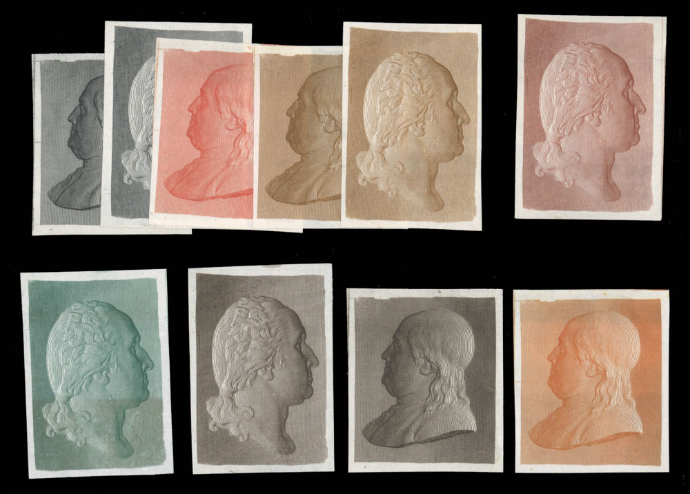 1851 Washington and Franklin vignettes, selection of 12 (six different colors of each), imperf. essays on laid india paper, occasional flaws, fine-v.f.