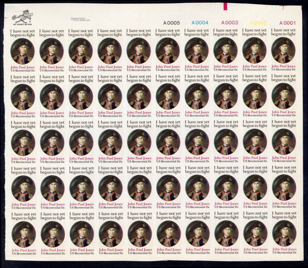 (1789Pg) 1976 15c John Paul Jones, imperforate sheet of 50, n.h., v.f.