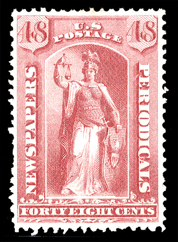 (PR43) 1875 Special Printing, 48c pale rose, unused without gum as issued, well centered, bright color, few rough perfs, fine example of this rare stamp, only 268 printed, with 1995 PSE certificate, cat. $4,000