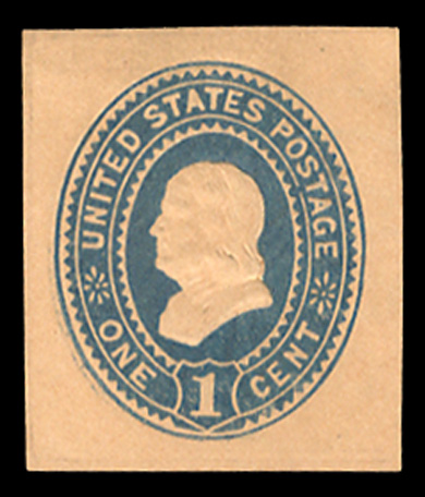 (U298) 1887 1c blue on oriental buff, cut square, 31x36mm, bright color and sharp impression, v.f. A great rarity, one of only nine believed to exist, with 1991 PFC, cat. $4,500