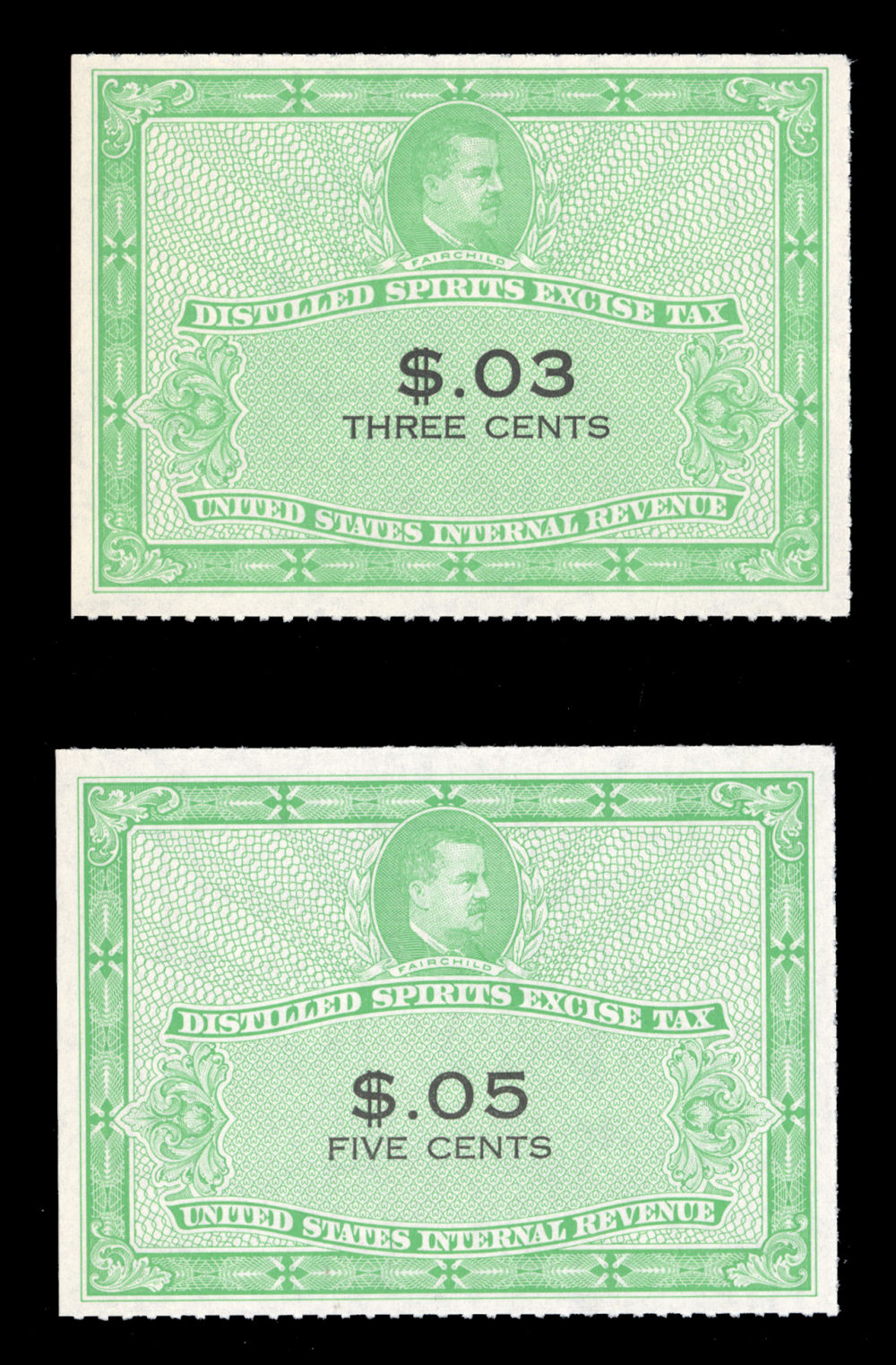 (RX27-28) 1952 3c and 5c yellow green and black, unused without gum as issued, v.f., each with 2014 PSE certificate, cat. $1,000