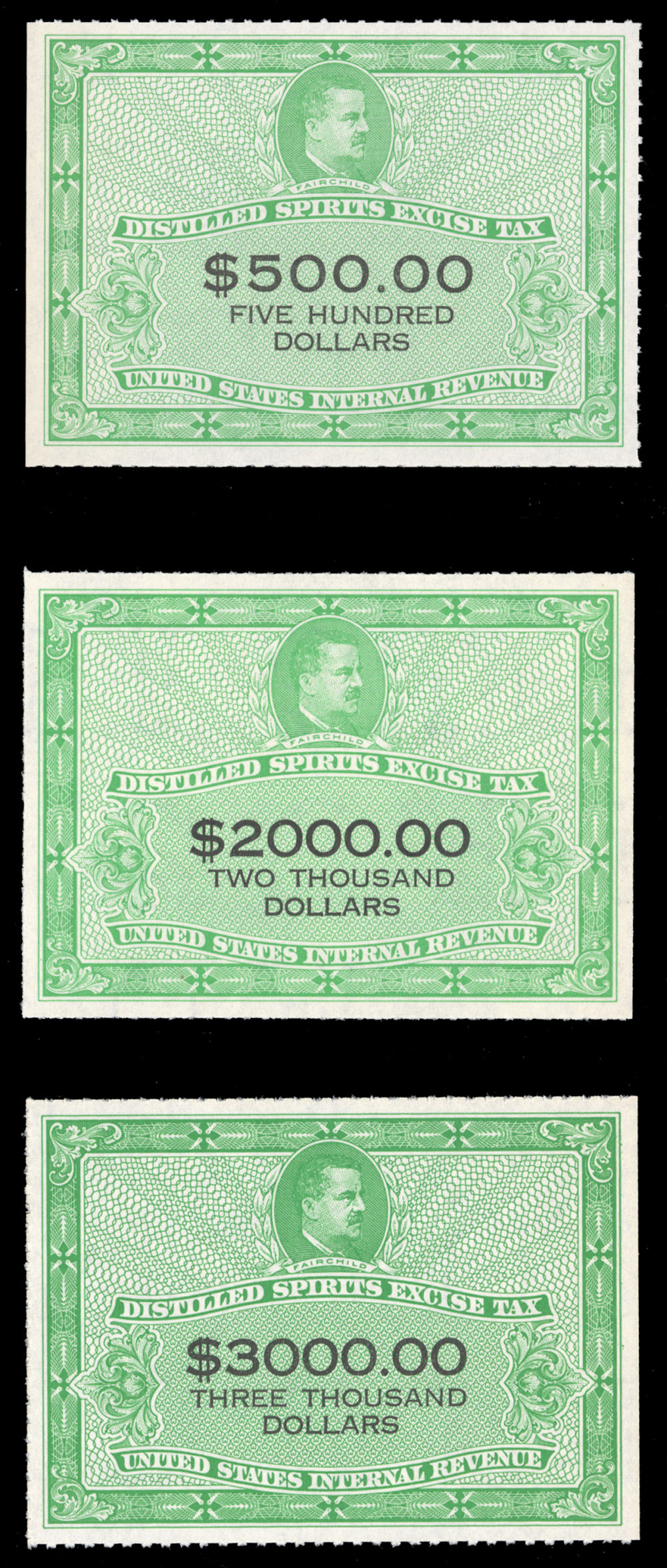 (RX40/44) 1952 $500, $2,000 and $3,000, three different, unused without gum as issued, fine-v.f., each with 2014 PSE certificate, cat. $1,650