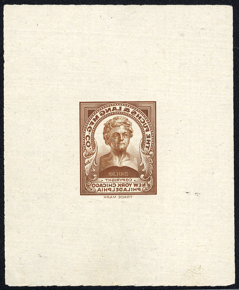 1934 die essay for the "Fuchs and Lang Mfg Co.", reversed design in brown, v.f.