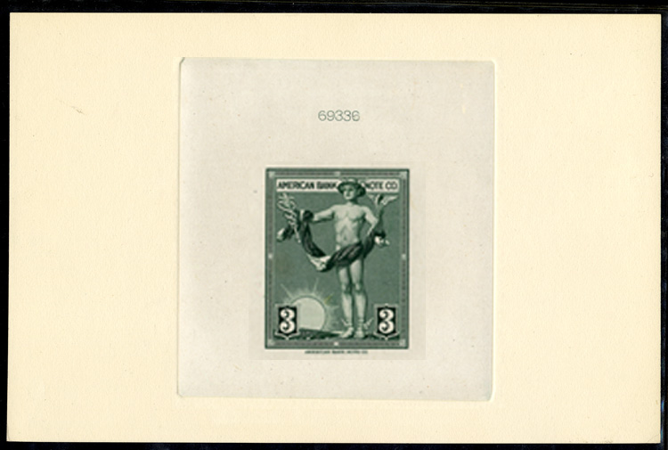 1935 American Banknote Co., large die essay in green, die sunk on card, v.f.