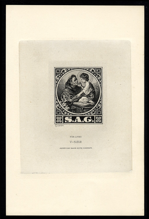 1934 American Bank Note Co., three different large die proofs printed for "S.A.G.", diff. religious designs, each with "for litho" inscription, all die sunk on cards, v.f.