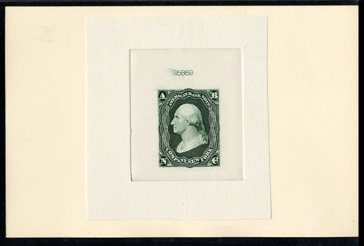 (79-E37c) 1868 Vignette of Washington, unshaded background, die in black on white glazed paper, card backing removed, v.f.