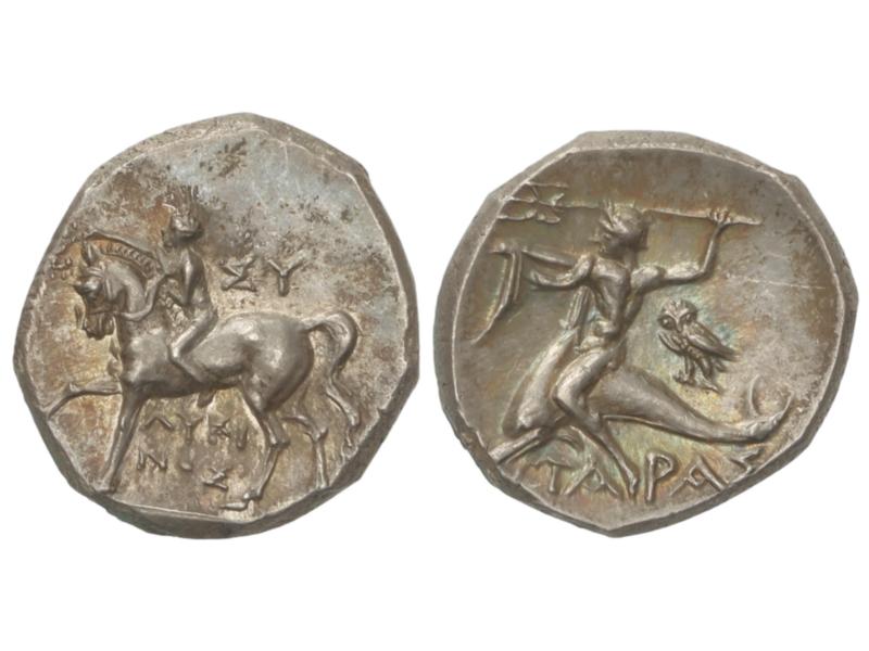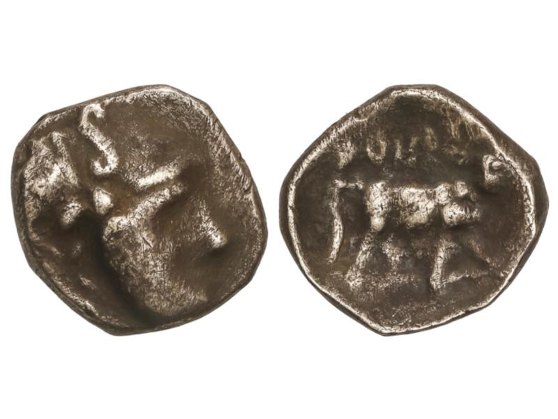 Estátera. 530-510 a.C. SYBARIS. LUCANIA. Anv.: Toro de pie a izquierda, cabeza a derecha; VM en exergo. Rev.: Incuso. 8,07 grs. Muy bella con preciosa pátina de colección antigua. RARA Y MÁS ASÍ. HGC 1-1231; HN Italy-1729; SNG ANS-828-44. EBC+/EBC.