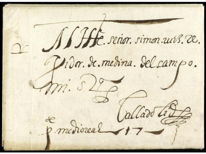 ESPAÑA: PREFILATELIA. 1585 (7 enero). TOLEDO a MEDINA DEL CAMPO. Carta completa con texto, tarifa manuscrita ´pte. medio real´. Rara en fecha tan temprana.