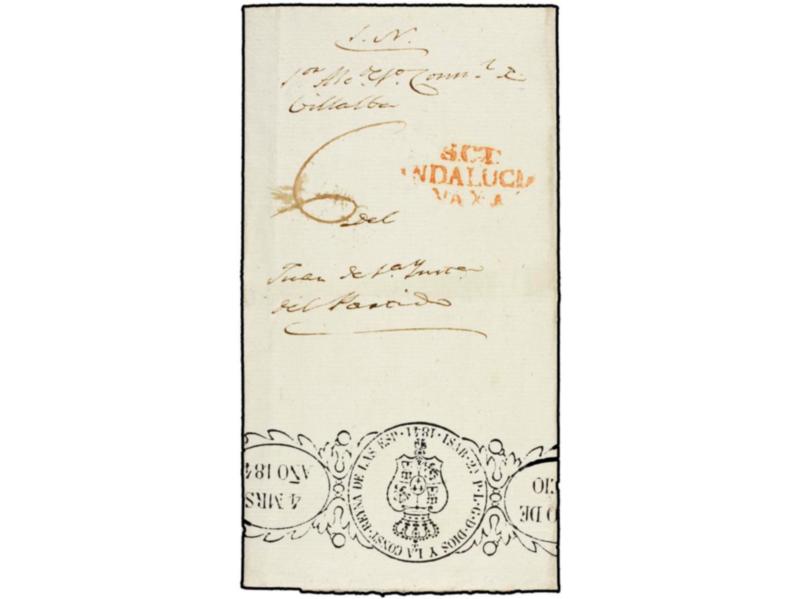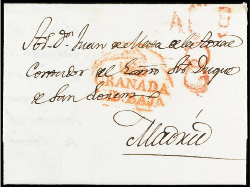 ESPAÑA: PREFILATELIA. 1841. GRANADA a MADRID. Marca GRANADA/AND. BAJA en rojo.
