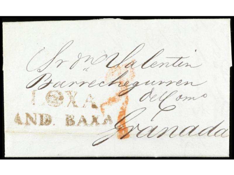 ESPAÑA: PREFILATELIA. 1842. LOJA a GRANADA. Marca LOXA/AND. BAXA en rojo.