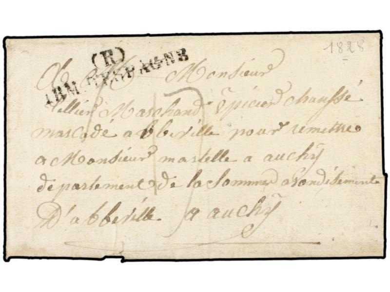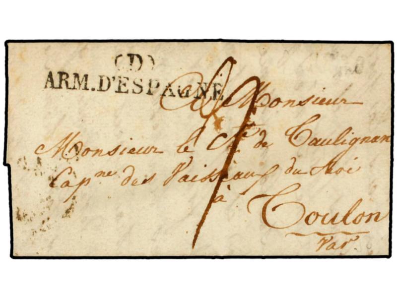 ESPAÑA: PREFILATELIA. 1828 (24 Mayo). SAN FERNANDO (Cádiz) a FRANCIA. Marca (R)/ARM. D´ESPAGNE. (Tizón X-60).