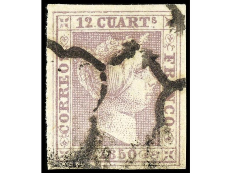 ESPAÑA. 12 cuartos lila. Bonito ejemplar. Ed.7. Cat. 170€.