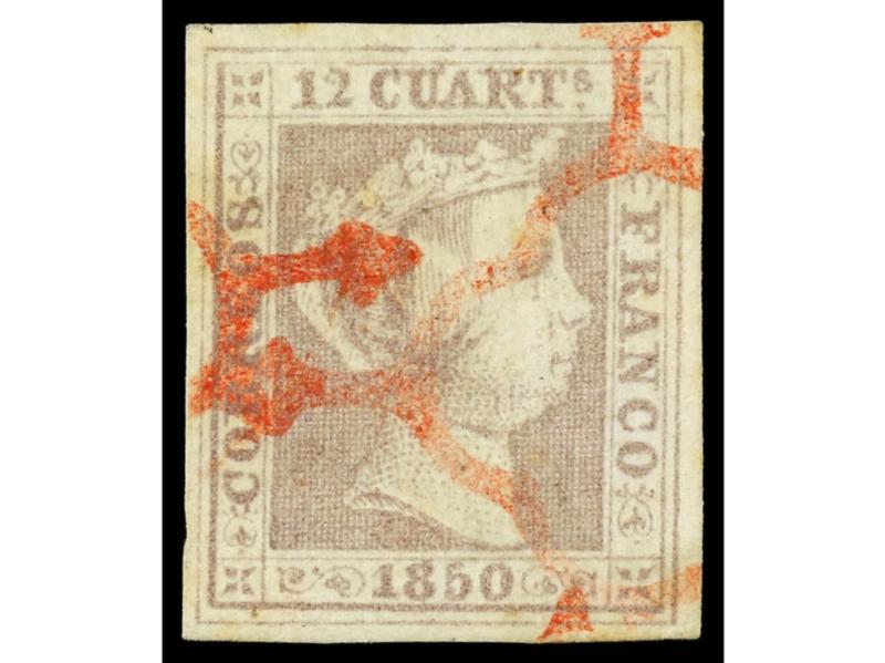 ESPAÑA. 12 cuartos gris lila (Ed. especializado 13b). RARO y de LUJO. Dictamen LLACH. Ed.13.