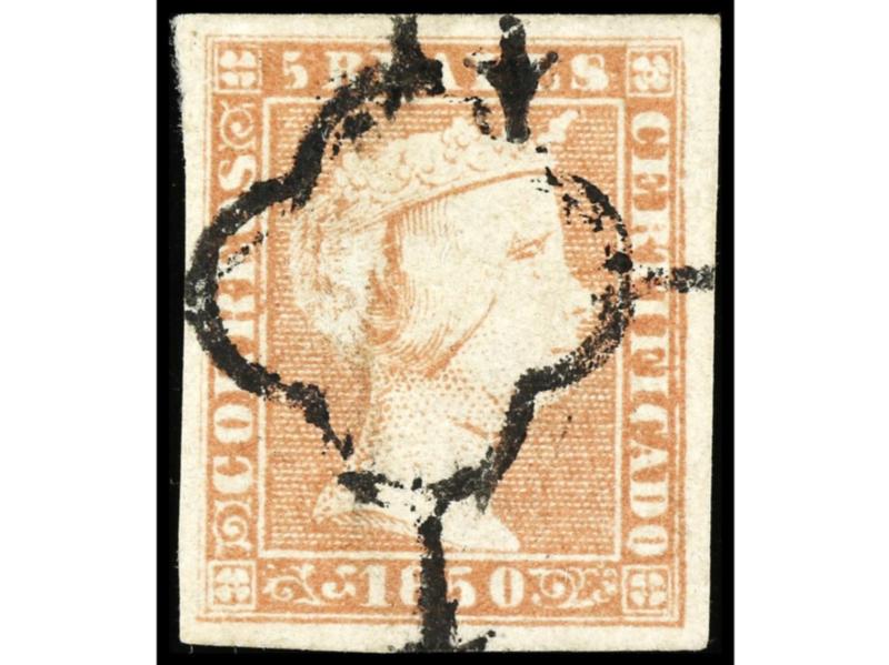 ESPAÑA. 5 reales rosa. MAGNÍFICO EJEMPLAR. Ed.9. Cat. 350€.